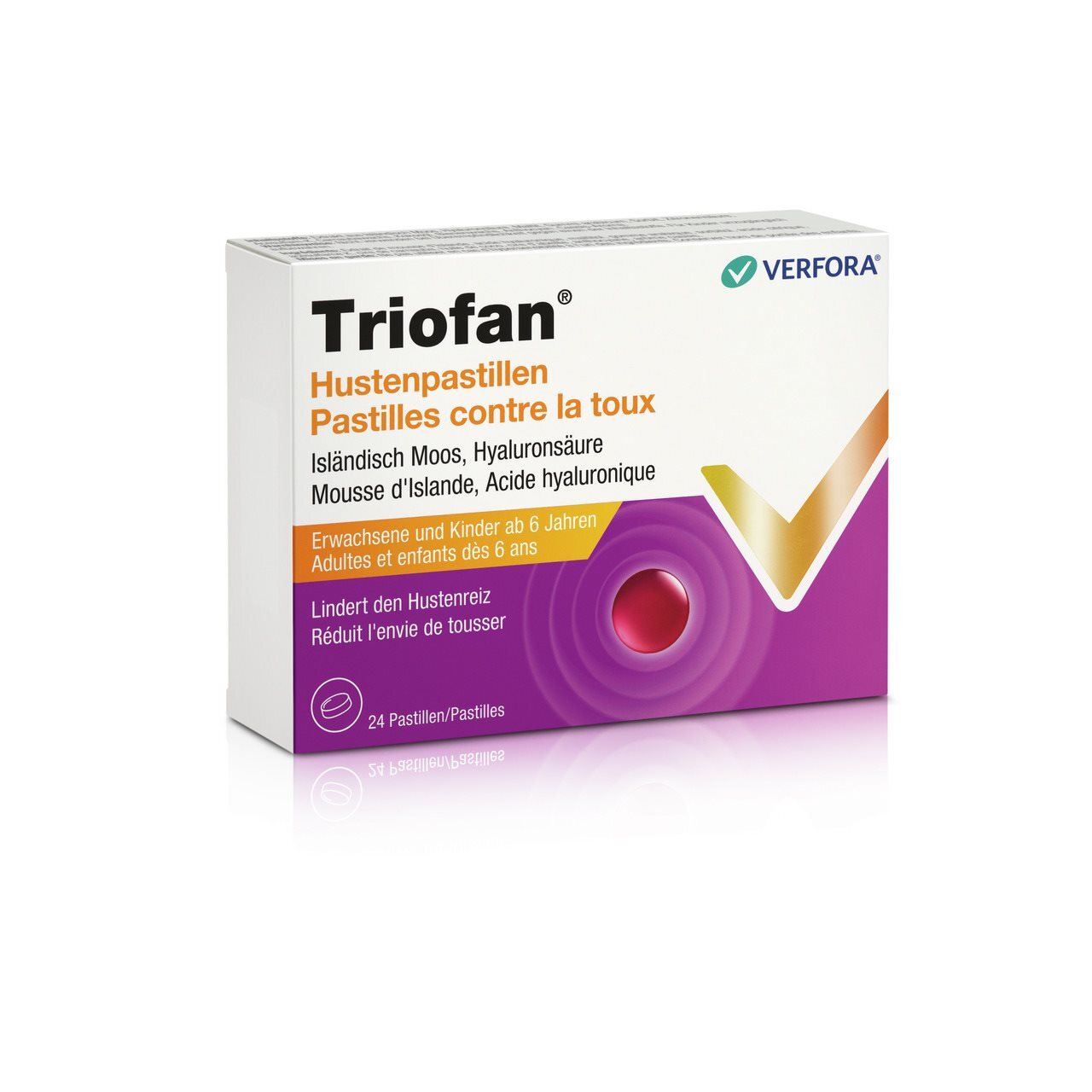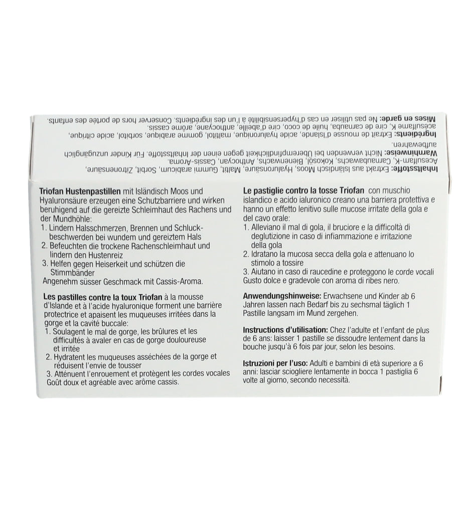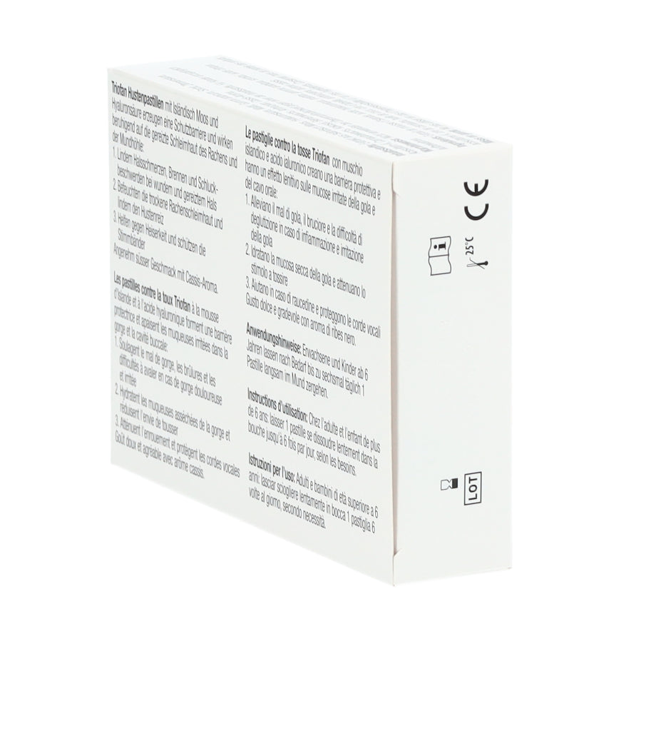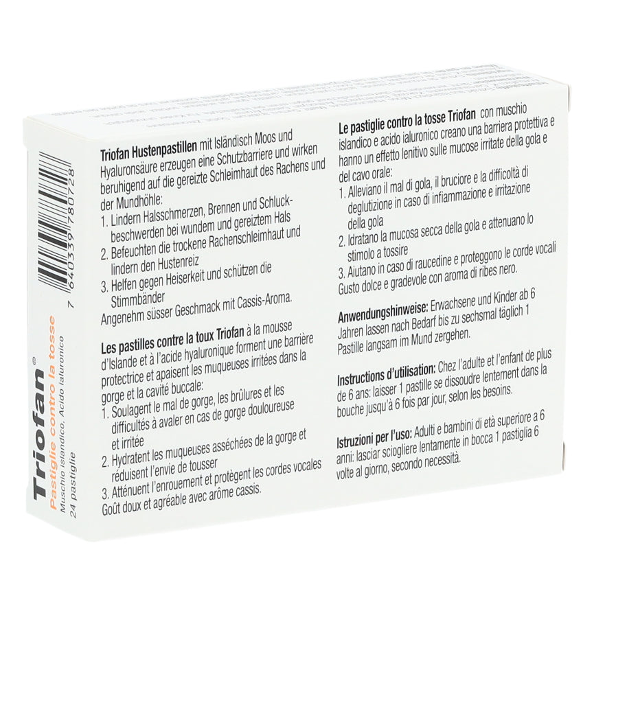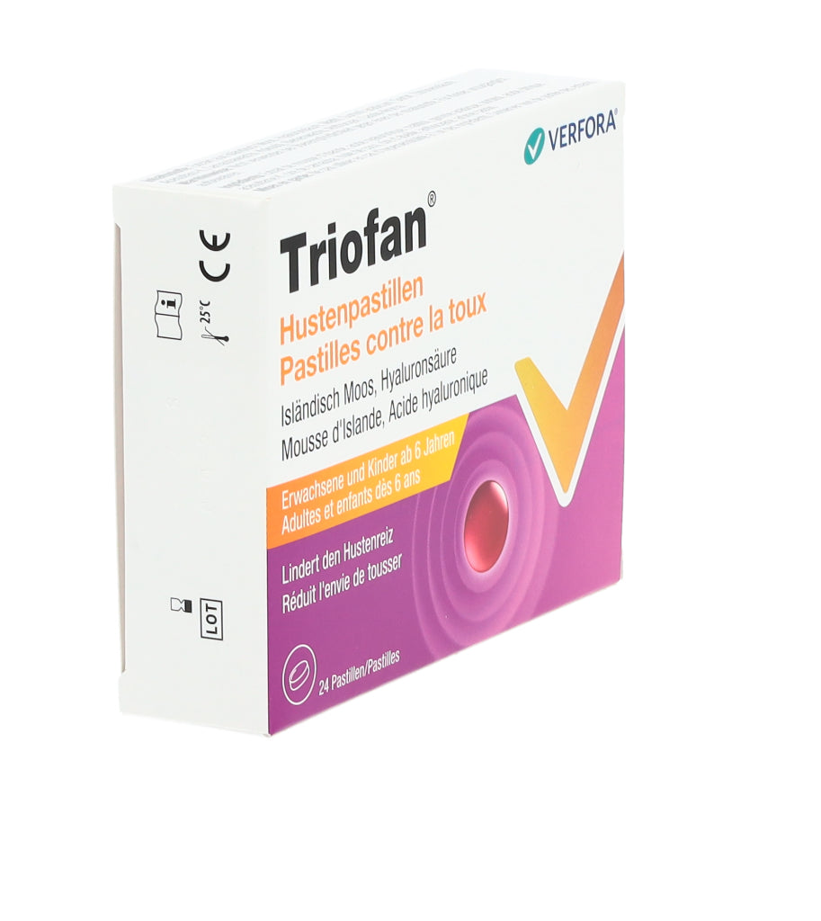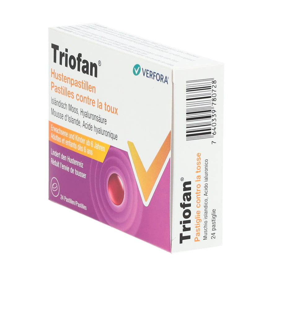 Triofan Hustenpastillen sind in Apotheken und Drogerien in Packungen mit 24 Pastillen erhältlich.