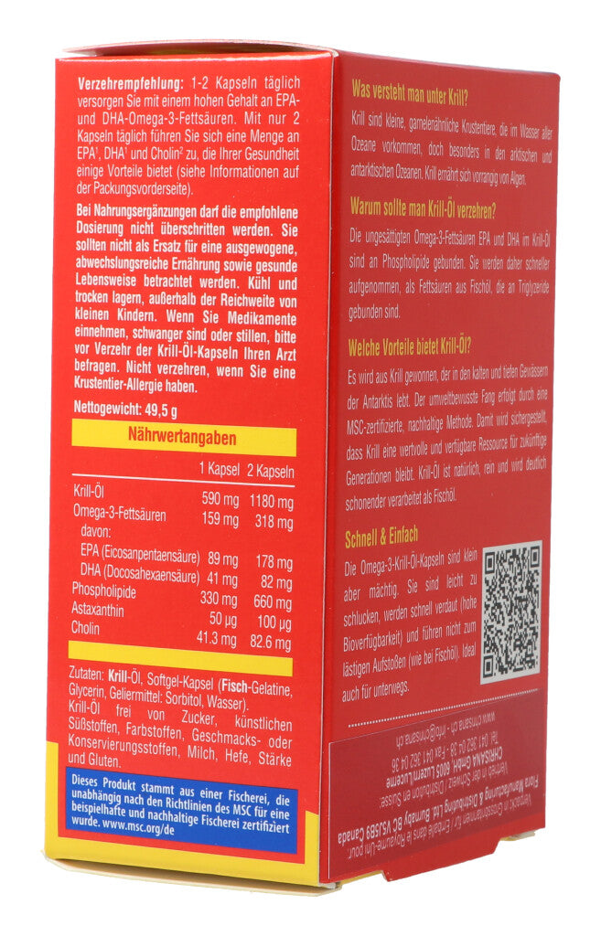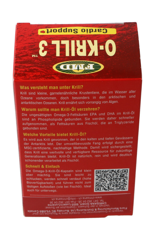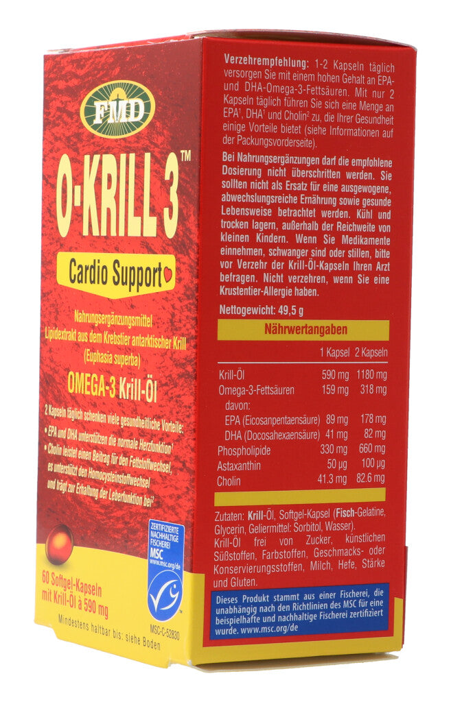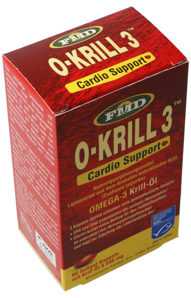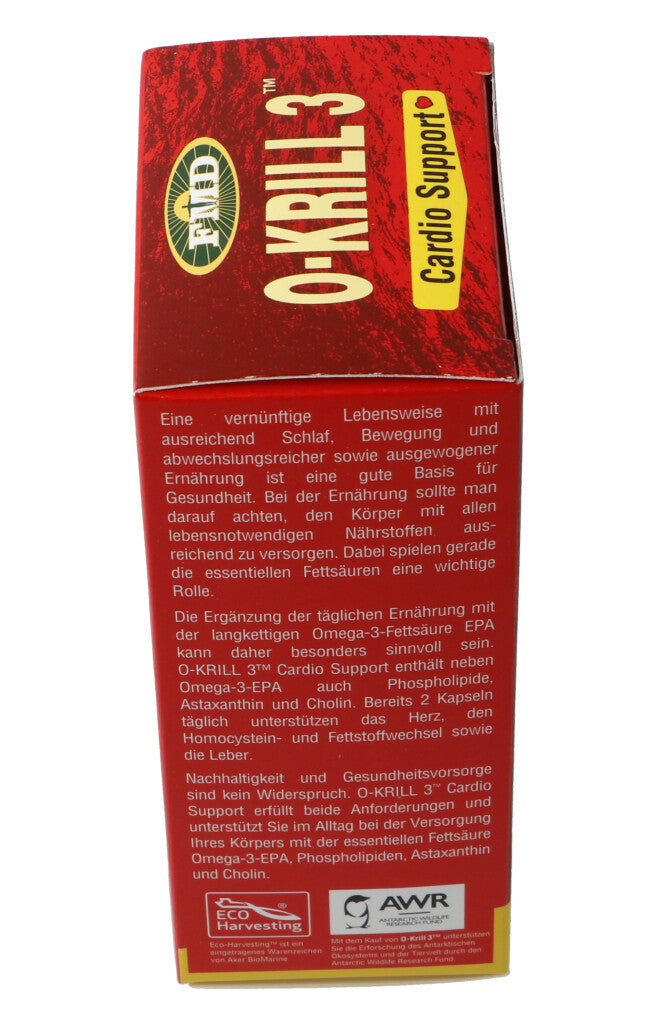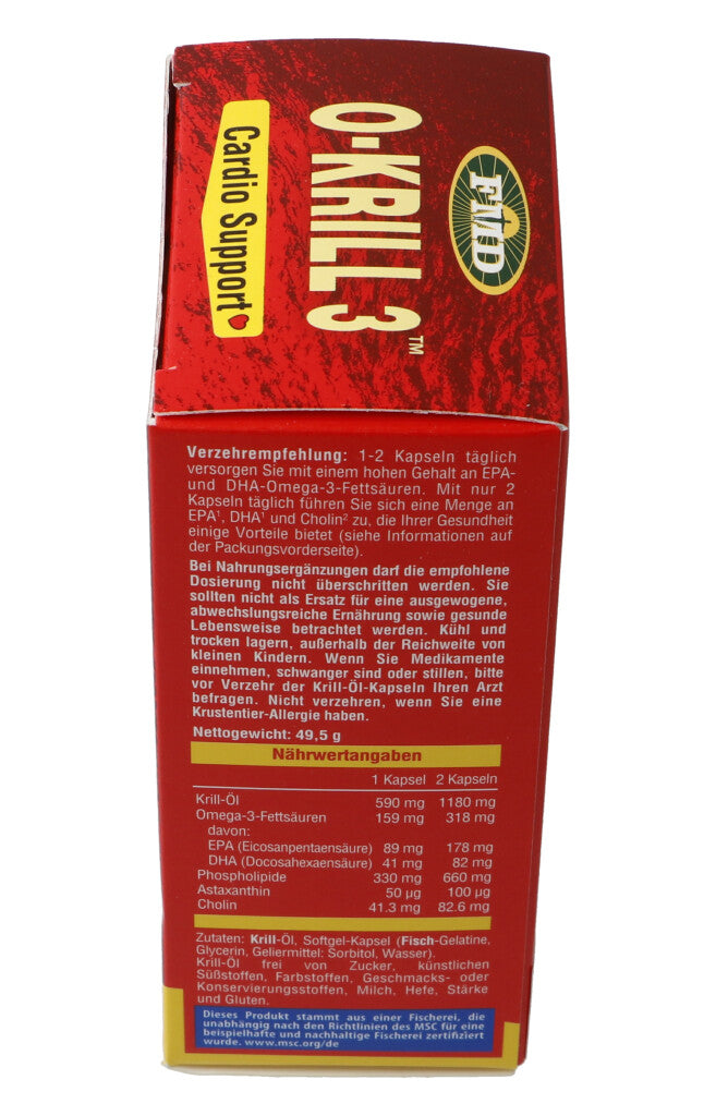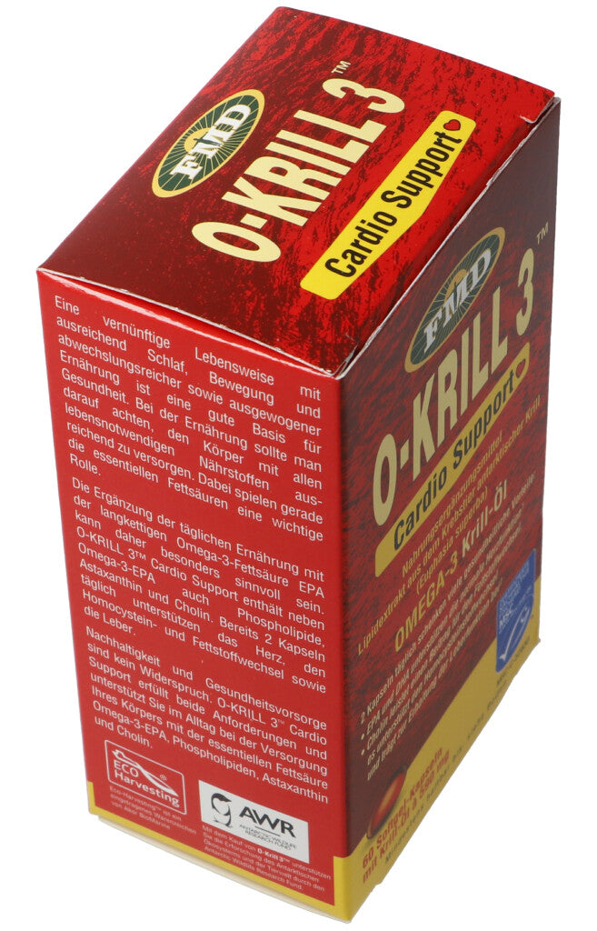Die Ergänzung der täglichen Ernährung mit der langkettigen Omega-3-Fettsäure EPA kann daher besonders sinnvoll sein. O-KRILL 3 Cardio support enthält neben Omega-3-EPA auch Phospholipide, Astaxanthin und Cholin. Bereits 2 Kapseln täglich unterstützen das Herz, den Homocystein- und Fettstoffwechsel sowie die Leber.