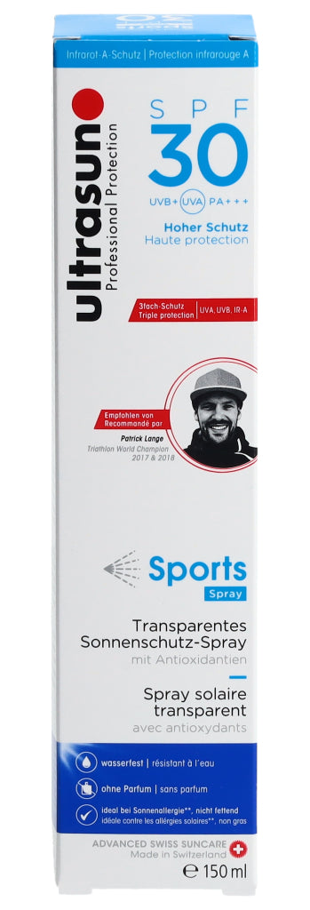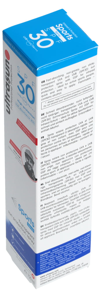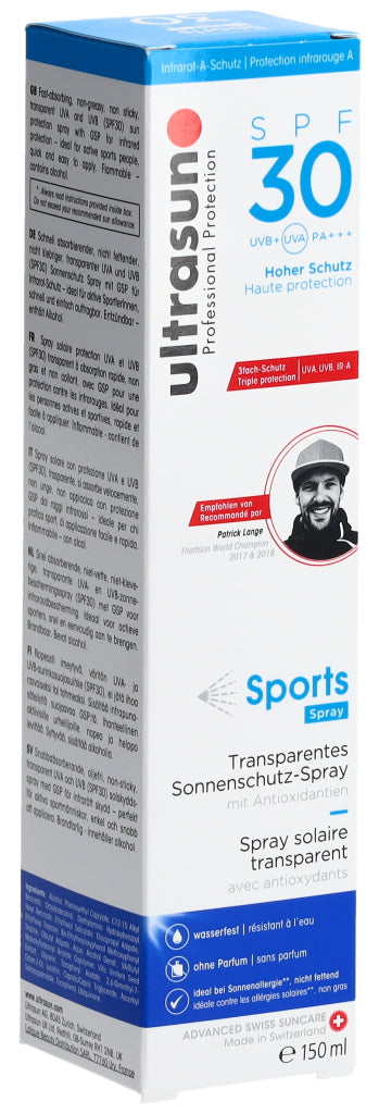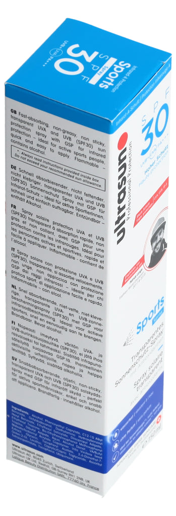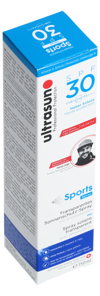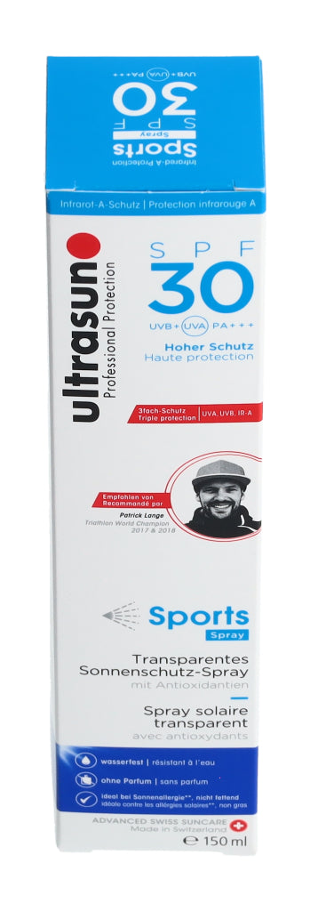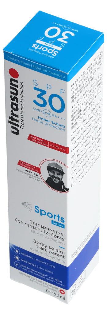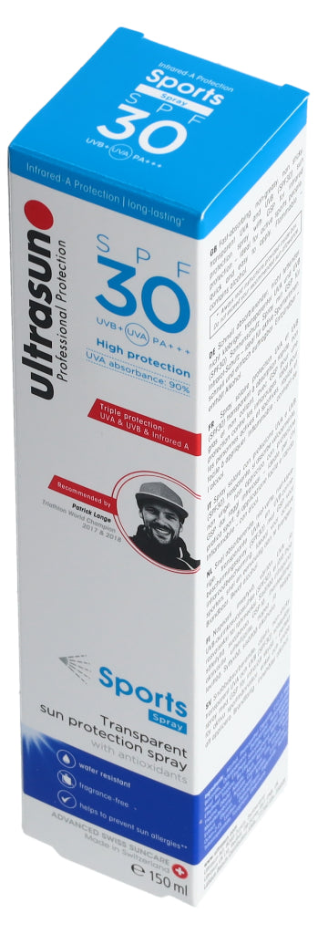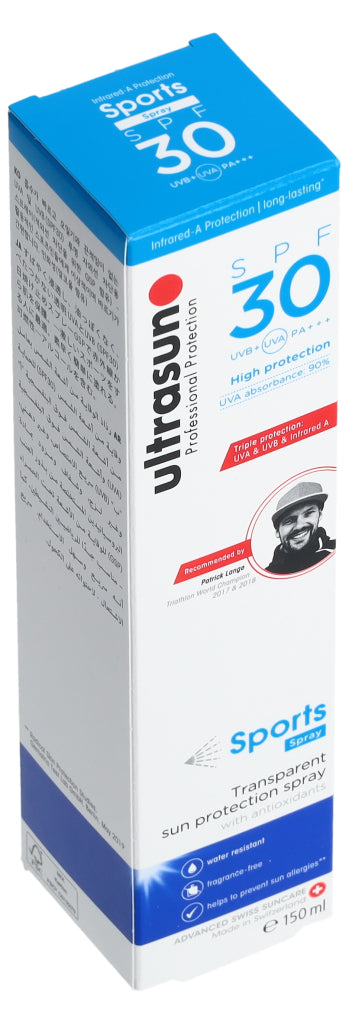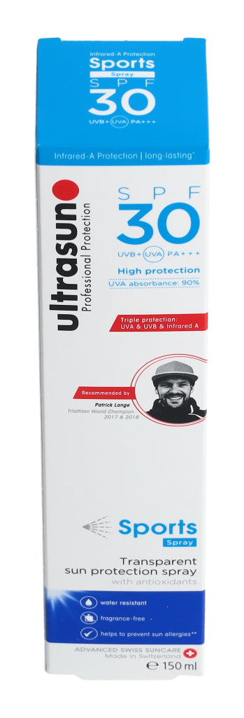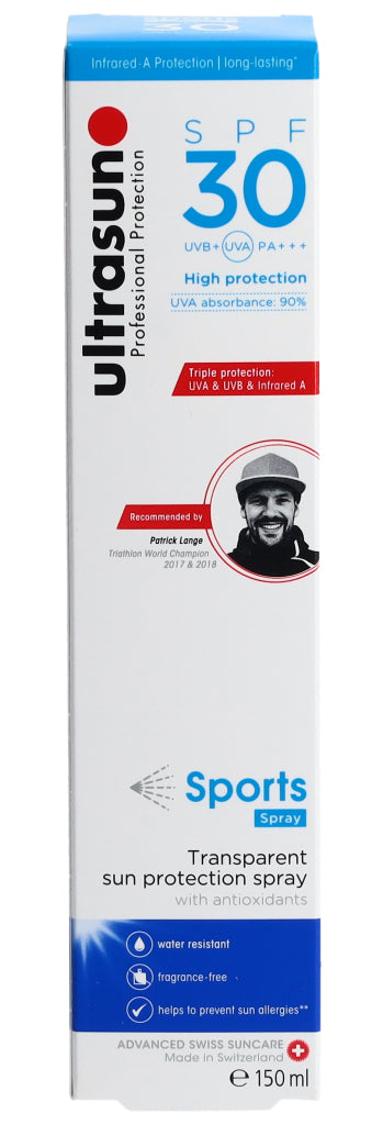 Das schnellabsorbierende Ultrasun Sports Spray ist perfekt SportlerInnen geeignet. Die nicht fettende Textur zieht schnell ein und kann auch bei einer Sonnenallergie problemlos aufgetragen werden. Der Schutz besteht aus der Kombination von InfraGuard, welches vor Infrarot Strahlung schützt und einem UVA sowie UVB Filter.