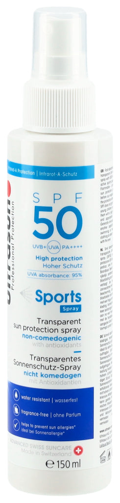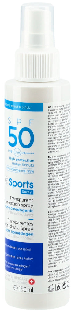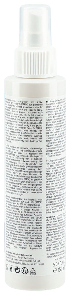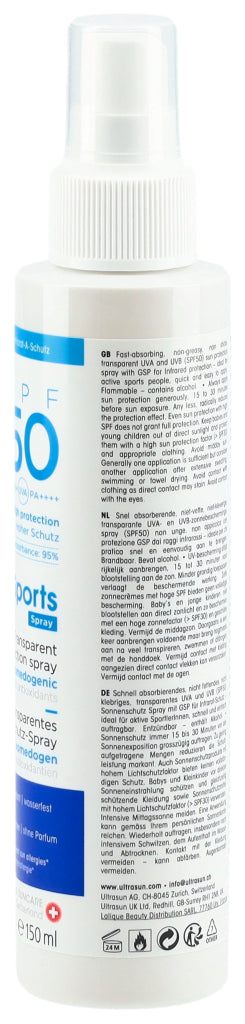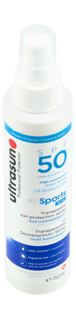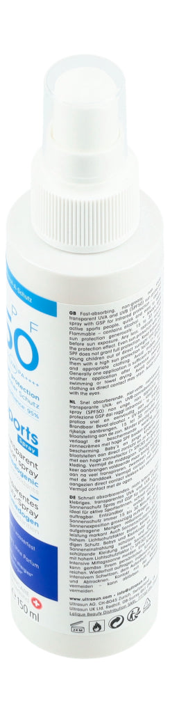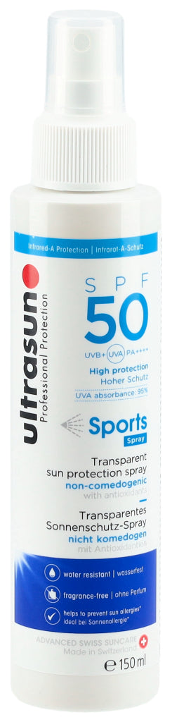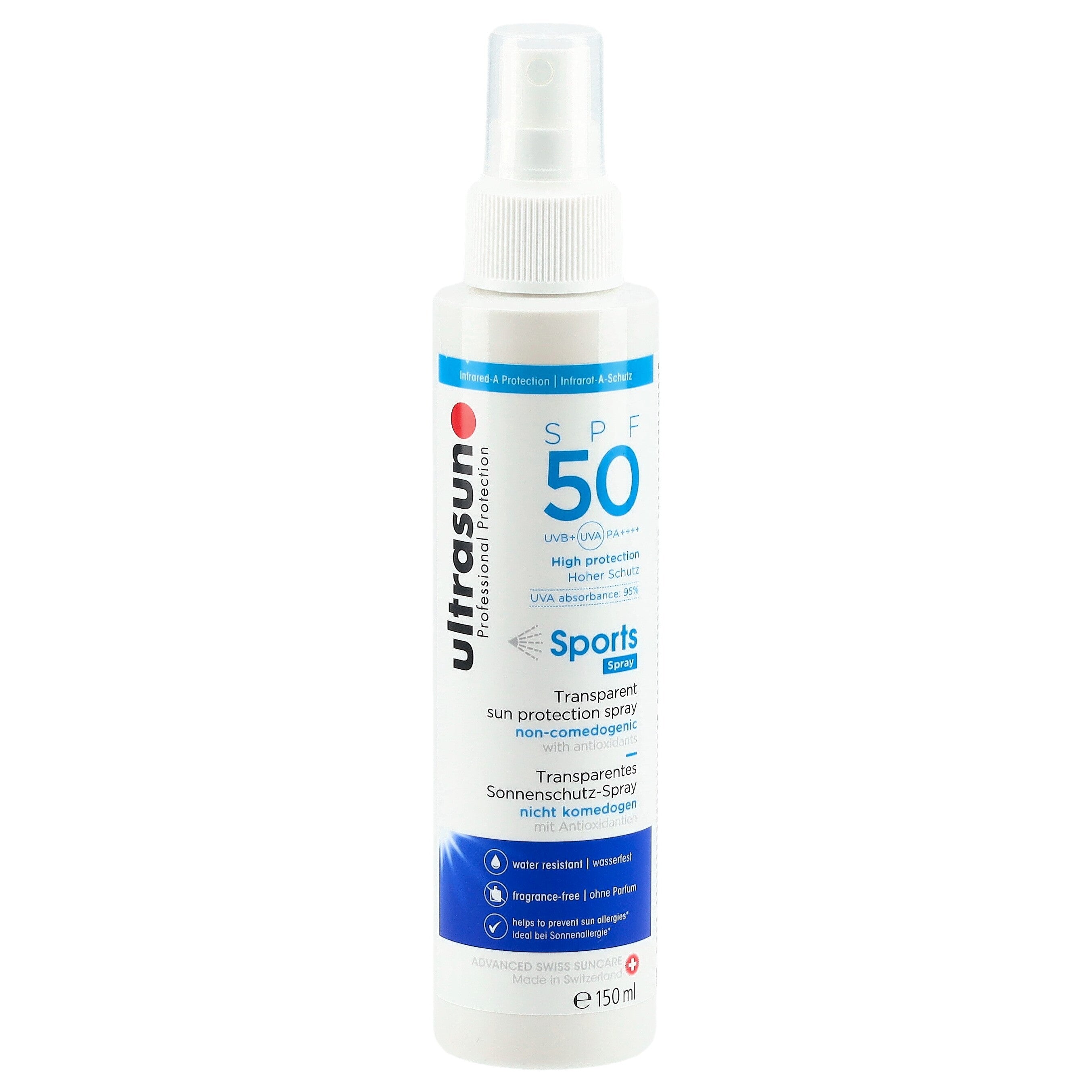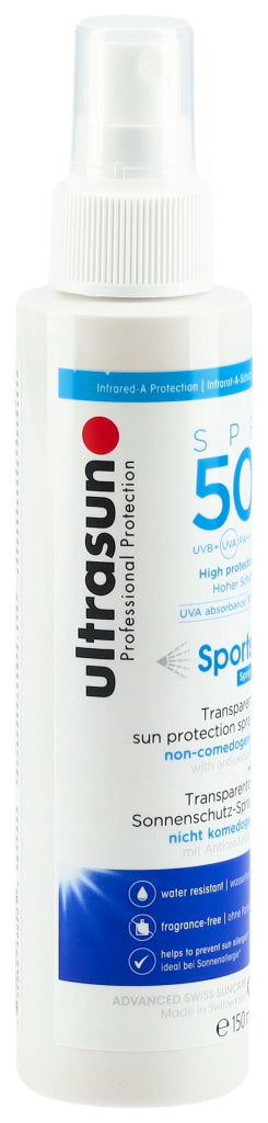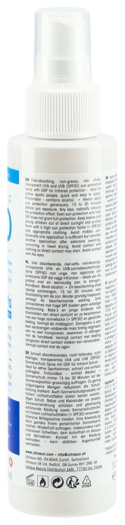 Das schnellabsorbierende Ultrasun Sports Spray ist perfekt SportlerInnen geeignet. Die nicht fettende Textur zieht schnell ein und kann auch bei einer Sonnenallergie problemlos aufgetragen werden. Der Schutz besteht aus der Kombination von InfraGuard, welches vor Infrarot Strahlung schützt und einem UVA sowie UVB Filter.