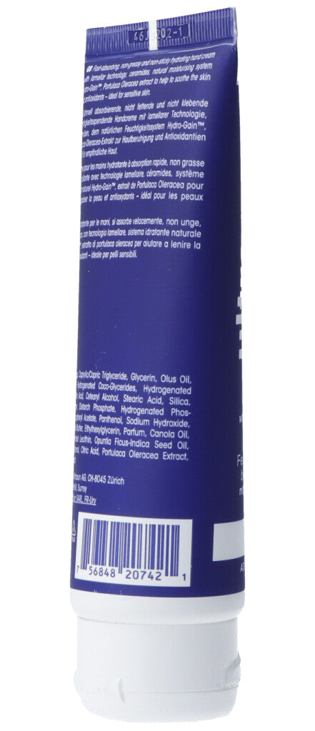 Handcreme mit lamellarer Technologie, Ceramiden, natürlichem Feuchtigkeitssystem Hydro-Gain™, Portulaca Oleracea-Extrakt zur Beruhigung der Haut und Antioxidantien - ideal für empfindliche Haut.
