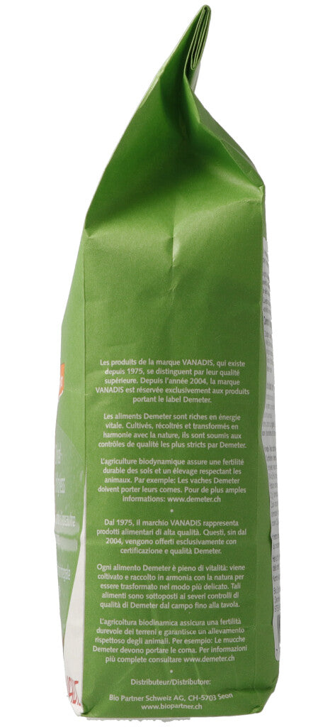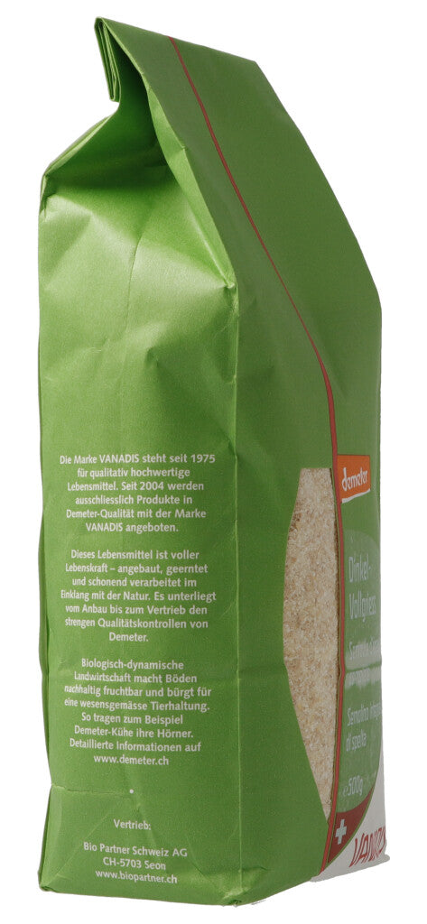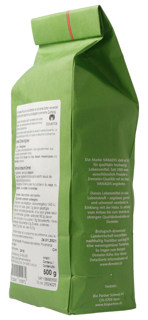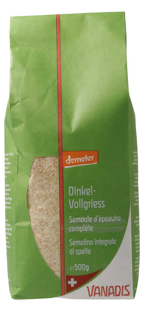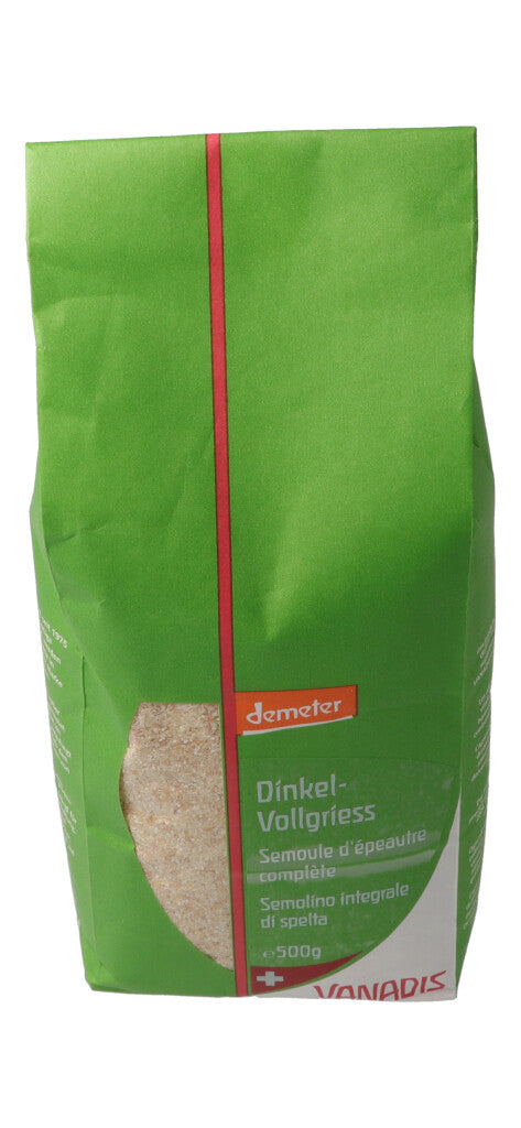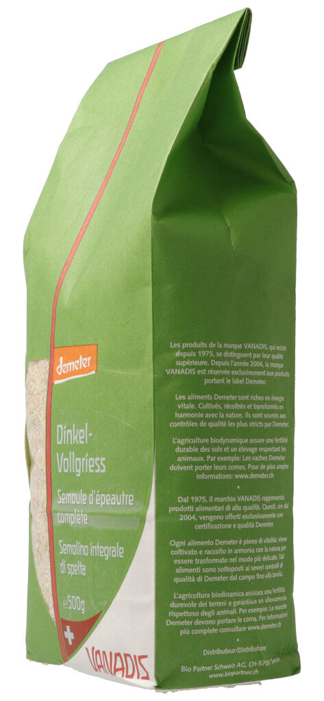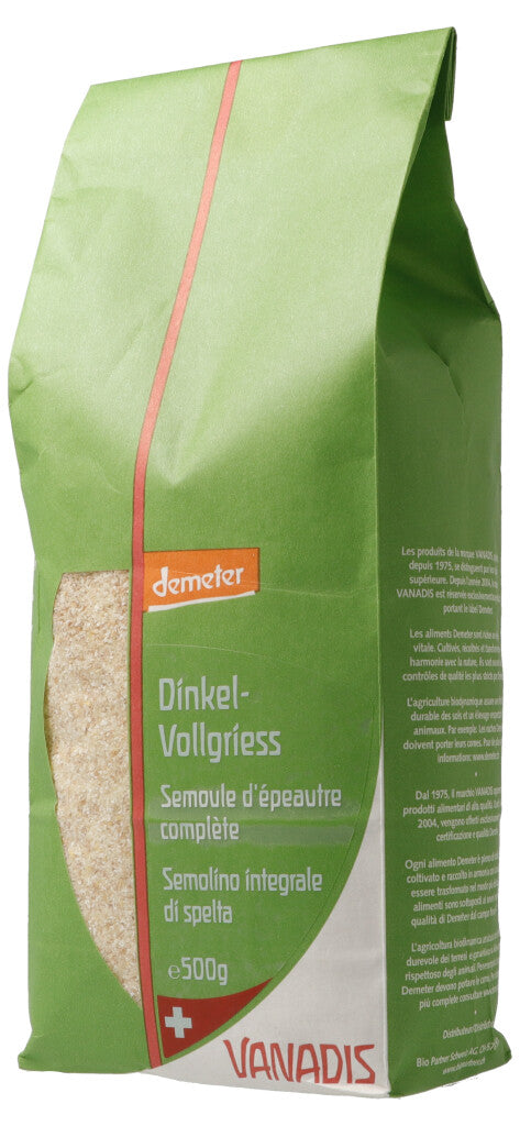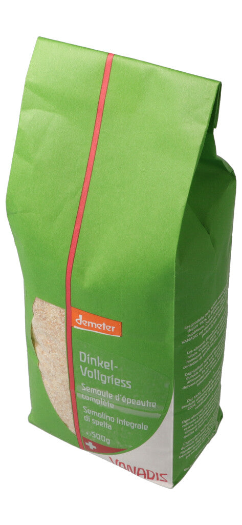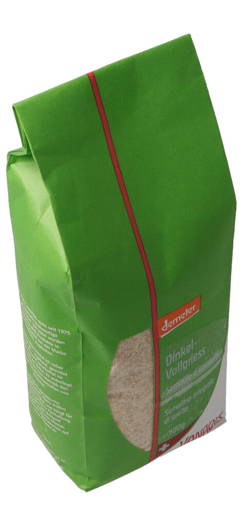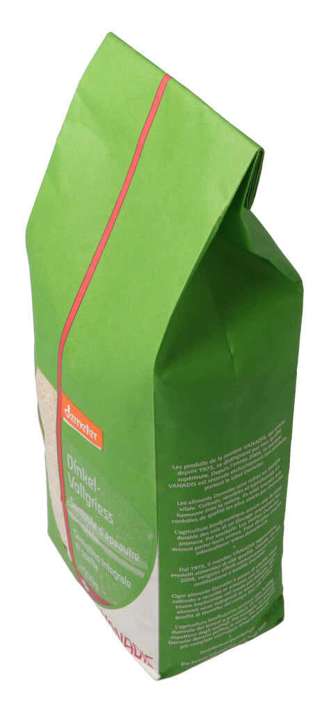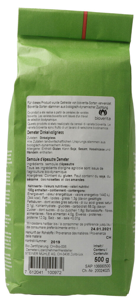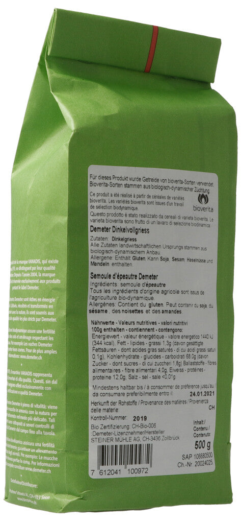 Dinkelgriess. Alle Zutaten landwirtschaftlichen Ursprungs stammen aus biologisch-dynamischem Anbau..