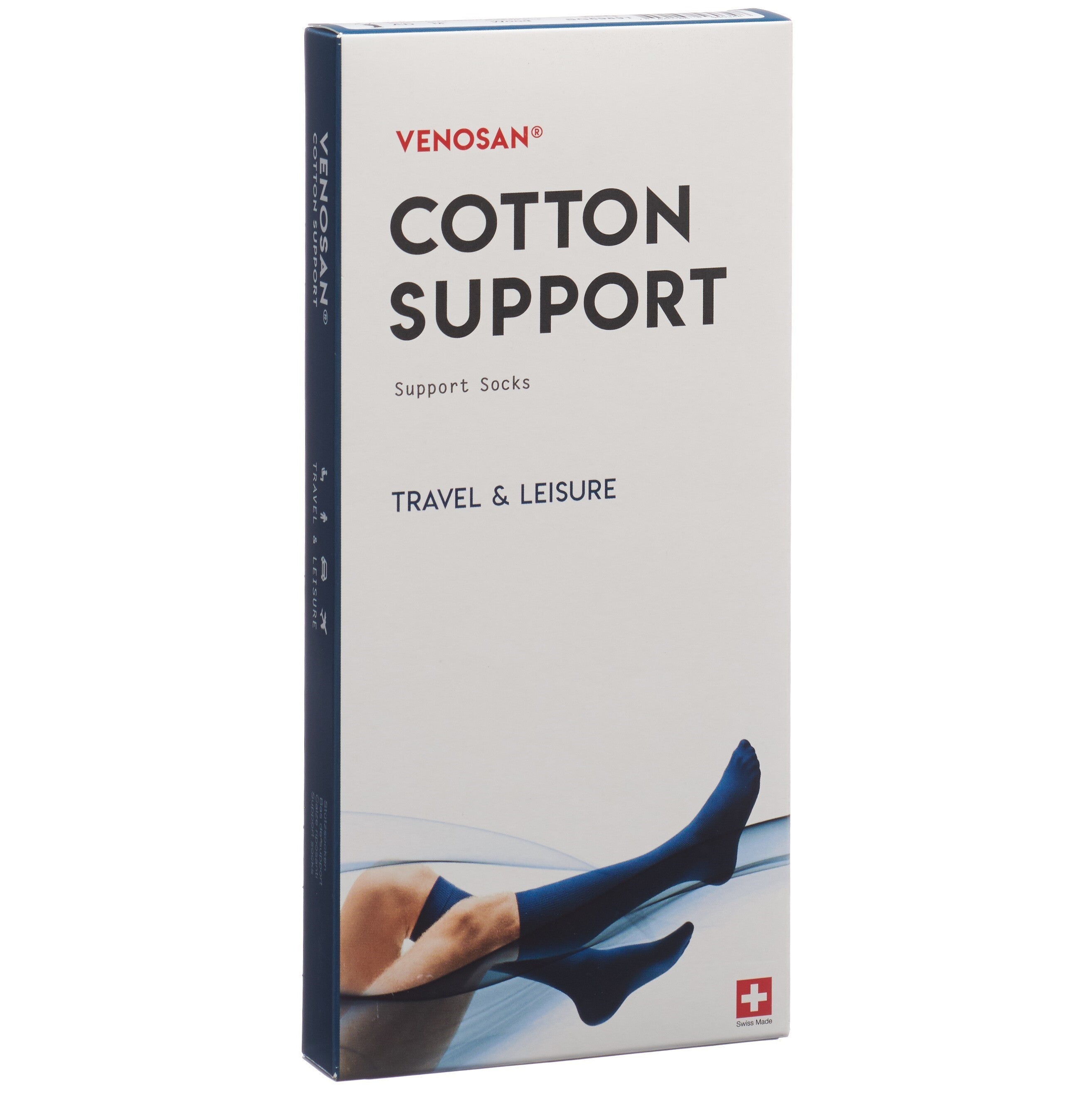 Die COTTON SUPPORT Socks von VENOSAN entlasten Ihre müden und schweren Beine im Alltag und auf Reisen. Sie üben einen leichten Druck (15-20 mmHg) auf Ihre Beine aus und fördern die Durchblutung. Dadurch geniessen Sie eine effiziente Thromboseprophylaxe-Wirkung. Tragen Sie die COTTON SUPPORT Stützstrümpfe bei der Arbeit, im Alltag oder auf langen Reisen, damit sich Ihre Beine leichter und entspannter anfühlen. Die Support Socks zeichnen sich durch eine stufenlos abnehmende Kompression aus.COTTON SUPPORT Socks werden in der Schweiz hergestellt und bestehen aus 65% Polyamid, 20% Baumwolle und 15% Elastan.