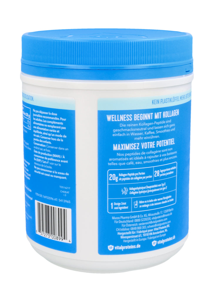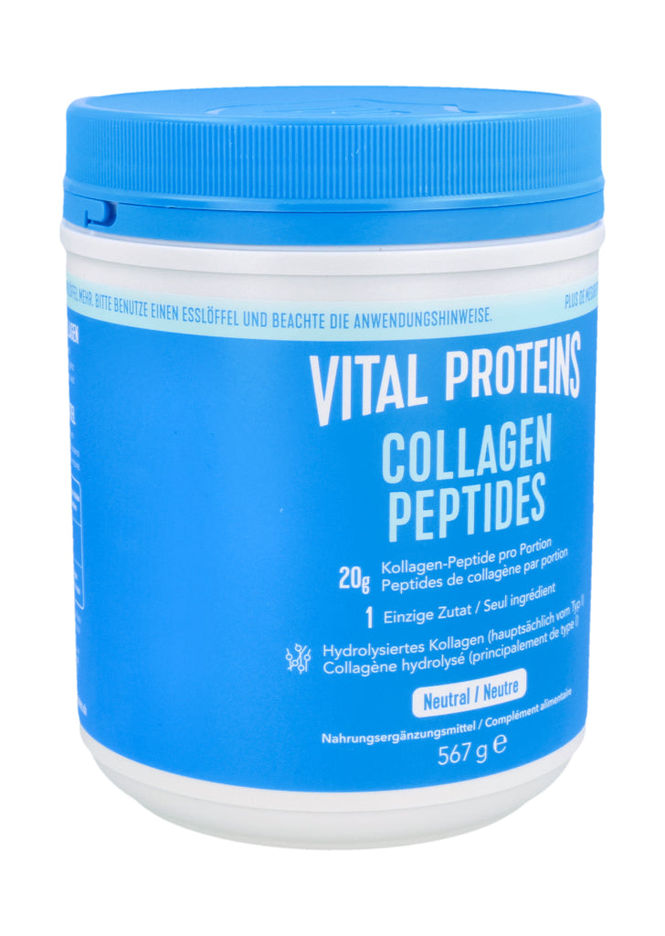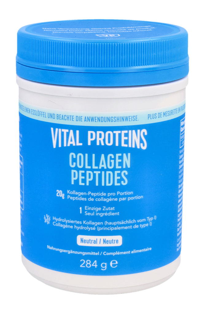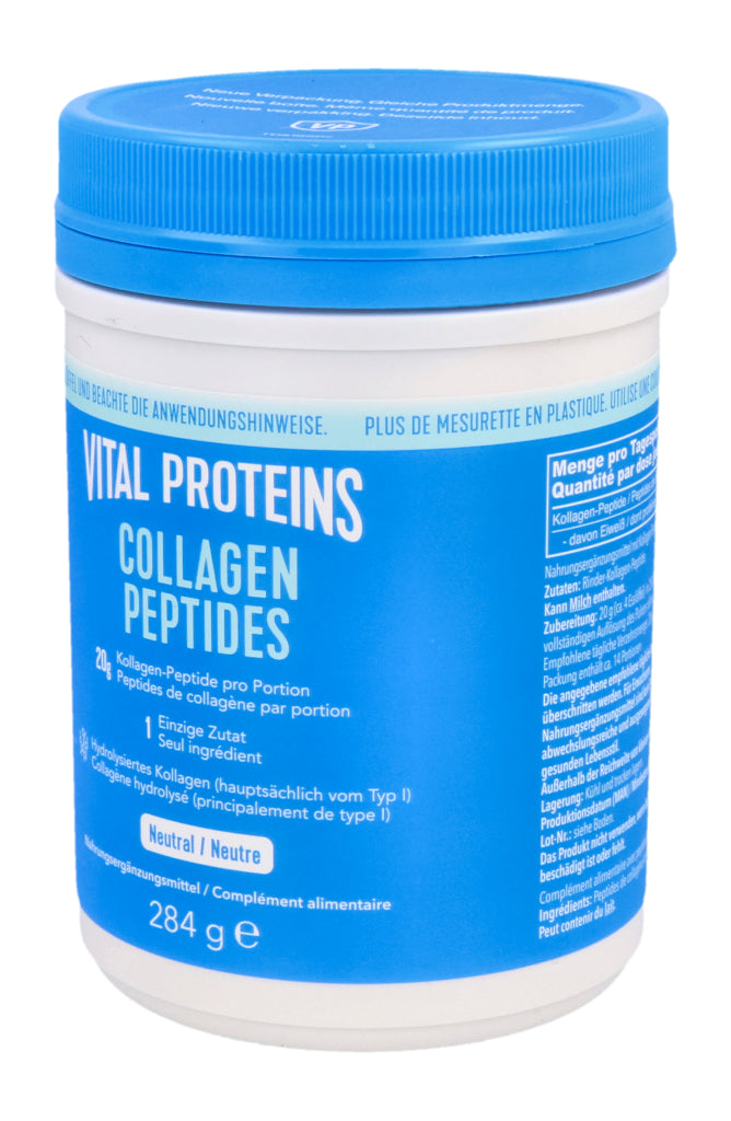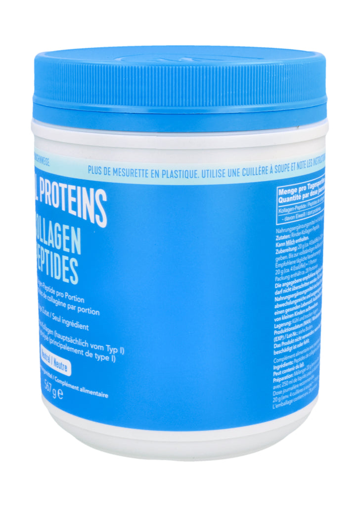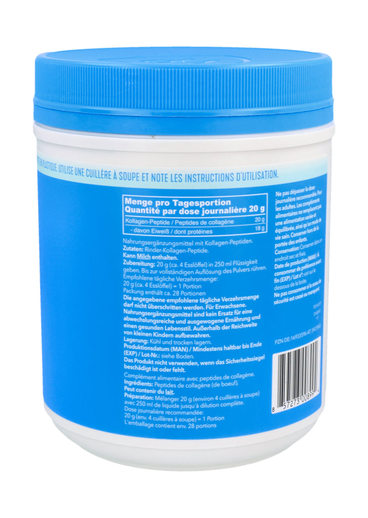 Collagen Peptides ist ein Nahrungsergänzungsmittel, das zu 100% aus Kollagenpulver besteht, hergestellt aus Rinderkollagen. Zuckerfrei und ohne Aroma.