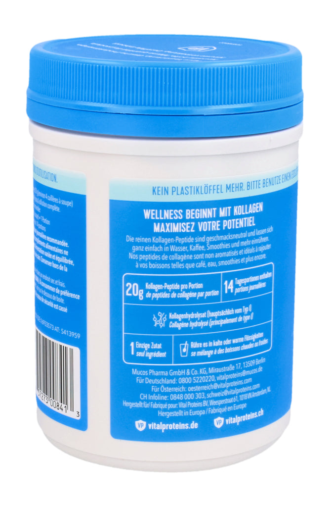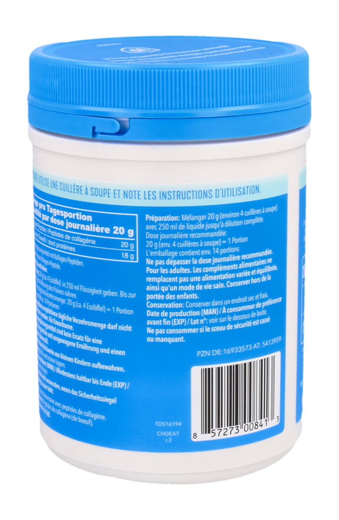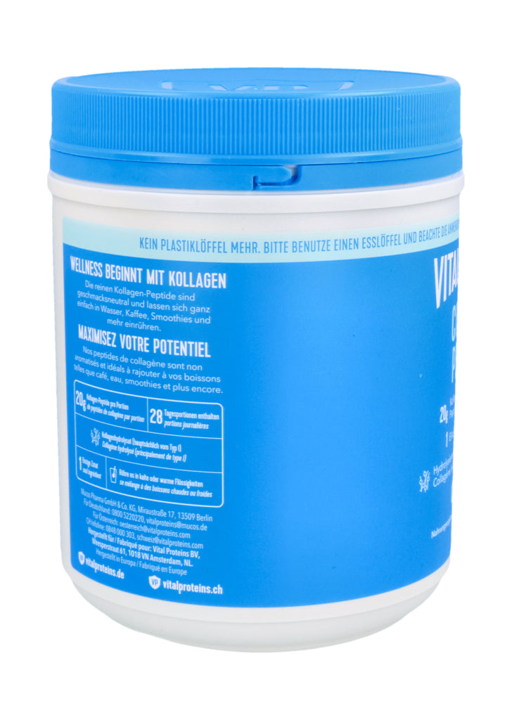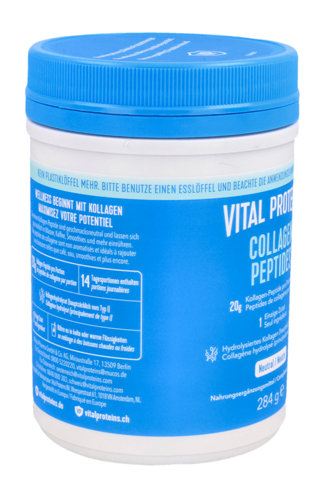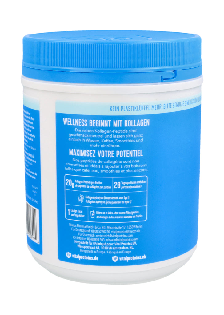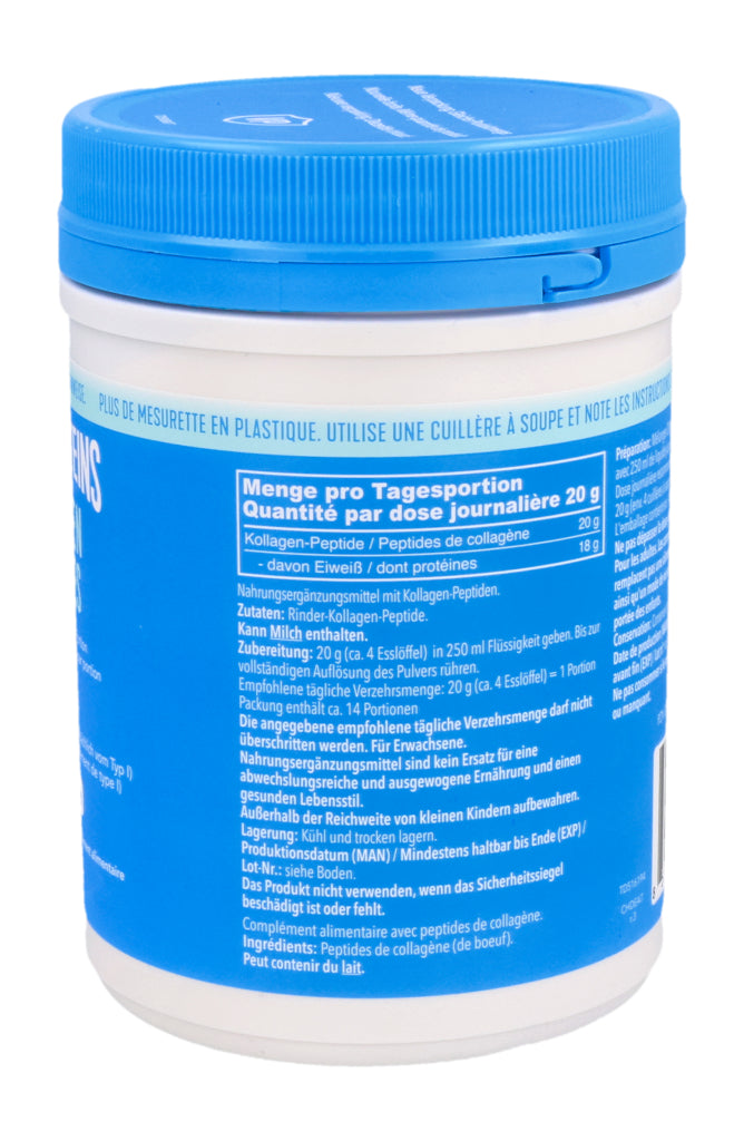 Collagen Peptides ist ein Nahrungsergänzungsmittel, das zu 100% aus Kollagenpulver besteht, hergestellt aus Rinderkollagen. Zuckerfrei und ohne Aroma.