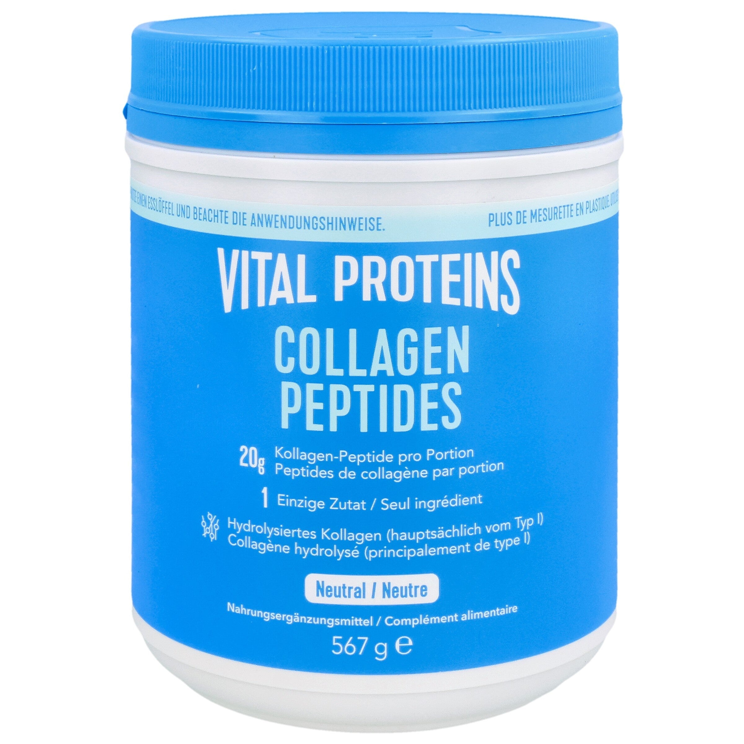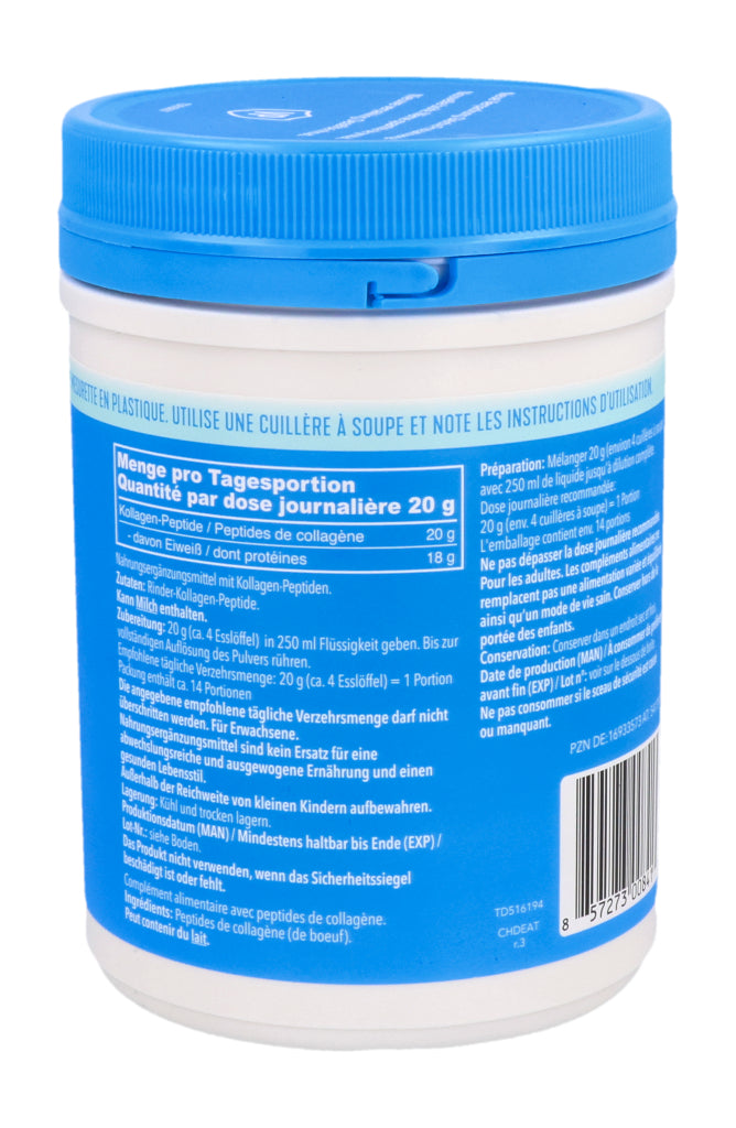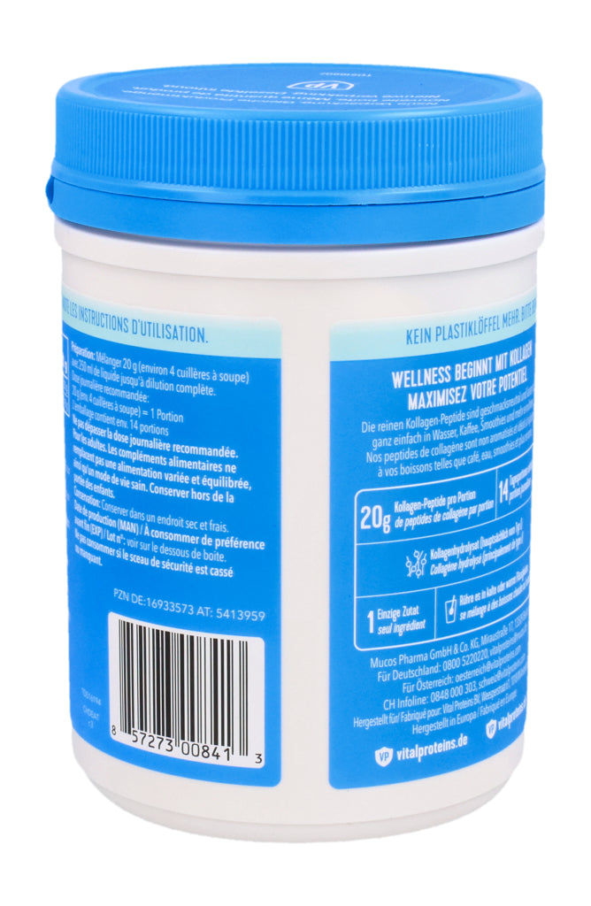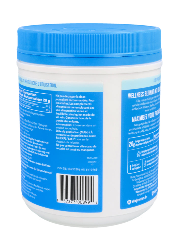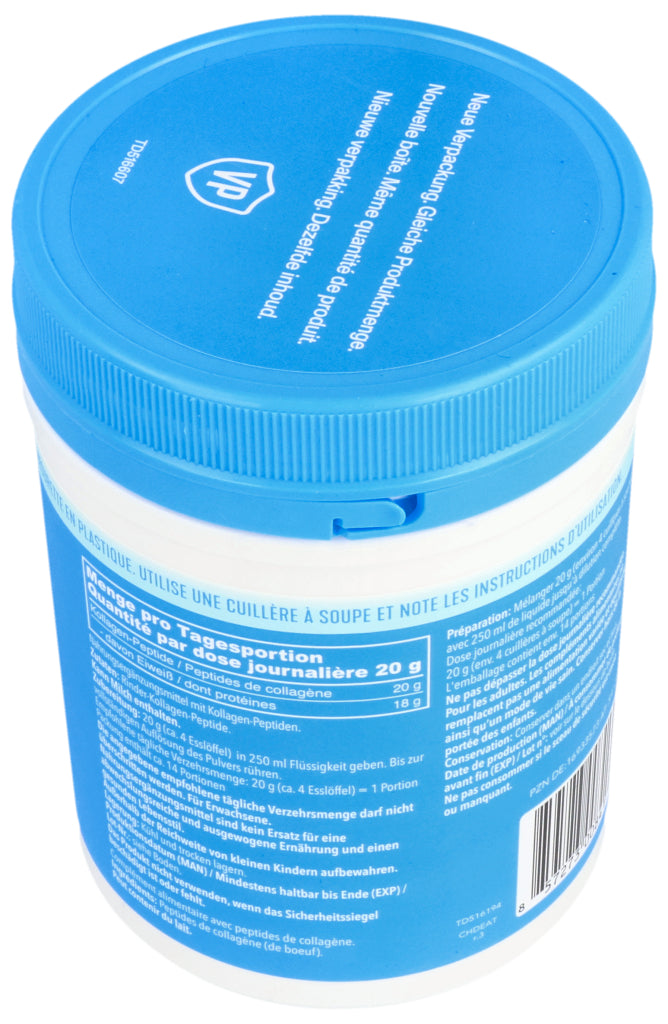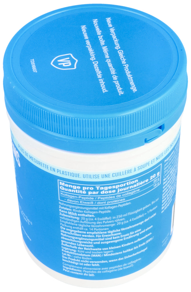Collagen Peptides ist ein Nahrungsergänzungsmittel, das zu 100% aus Kollagenpulver besteht, hergestellt aus Rinderkollagen. Zuckerfrei und ohne Aroma.