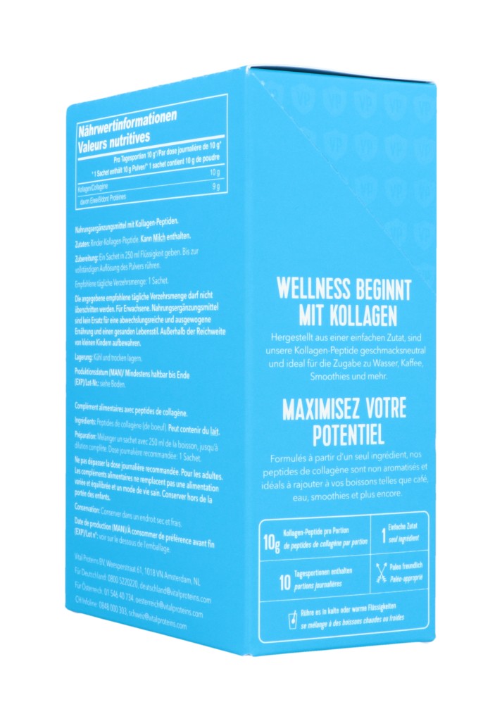 Kollagen findet sich in unserem Bindegewebe, unseren Sehnen, Bändern und Knochen und trägt zu Kraft, Flexibilität, Bewegung und Mobilität bei. Ab etwa 25 Jahren beginnt die natürliche Kollagenproduktion in unserem Körper jährlich um etwa 1-2 % zu sinken. Eine regelmässige Supplementierung mit Kollagen kann helfen, diesen natürlichen Rückgang auszugleichen. Darüber hinaus kann es in eine Beauty-Routine für Haut, Haare und Nägel integriert werden.