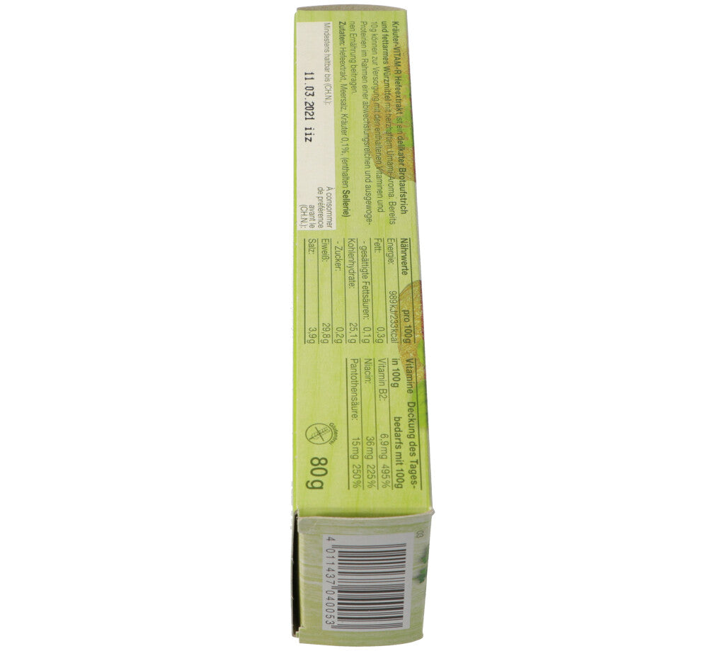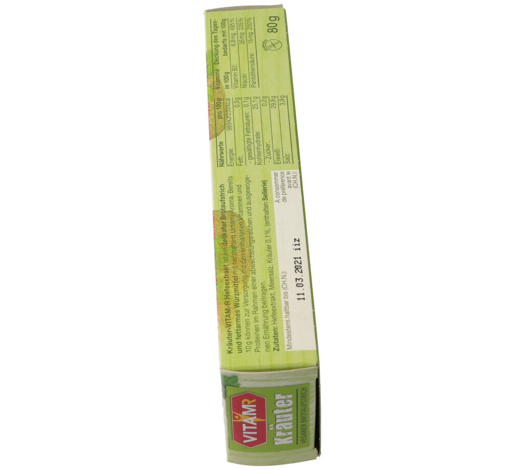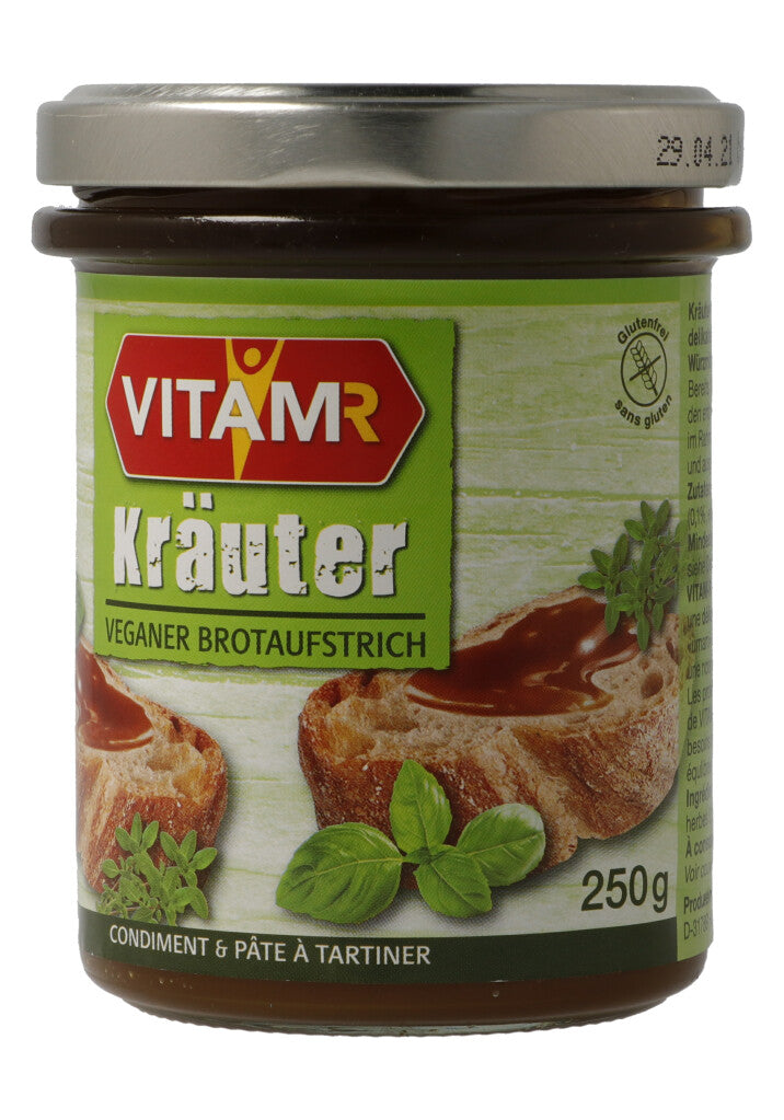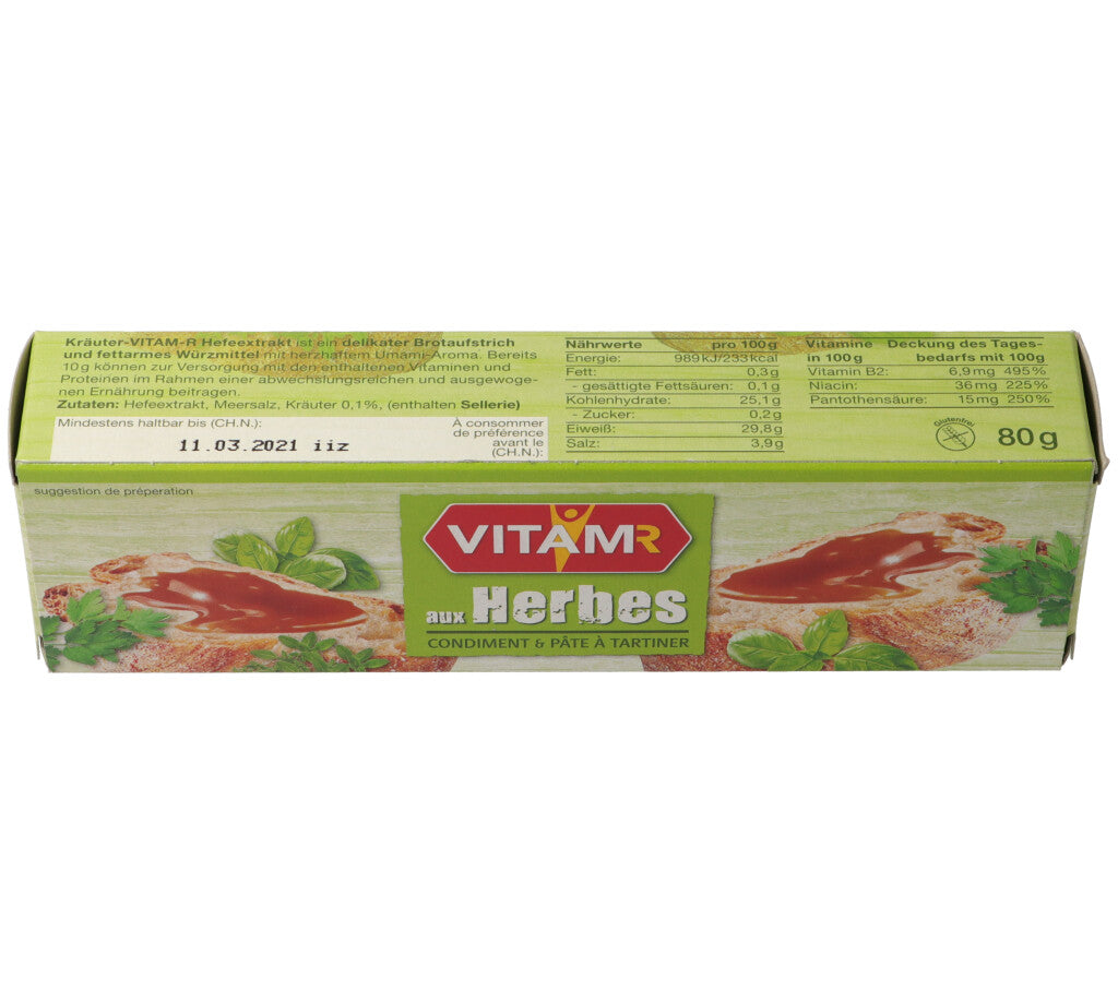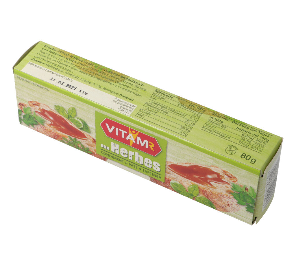 Kräuter- VITAM-R Hefeextrakt ist ein delikater Brotaufstrich und fettarmes Würzmittel mit herzhaftem Umami-Aroma. Vegan.