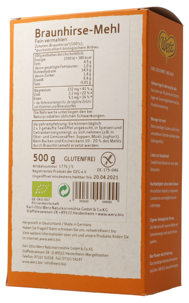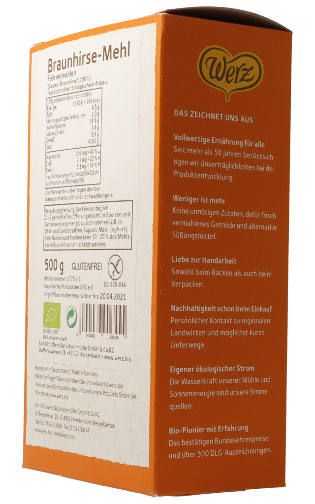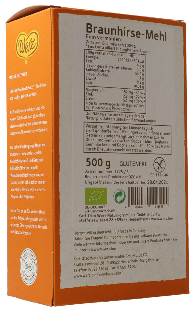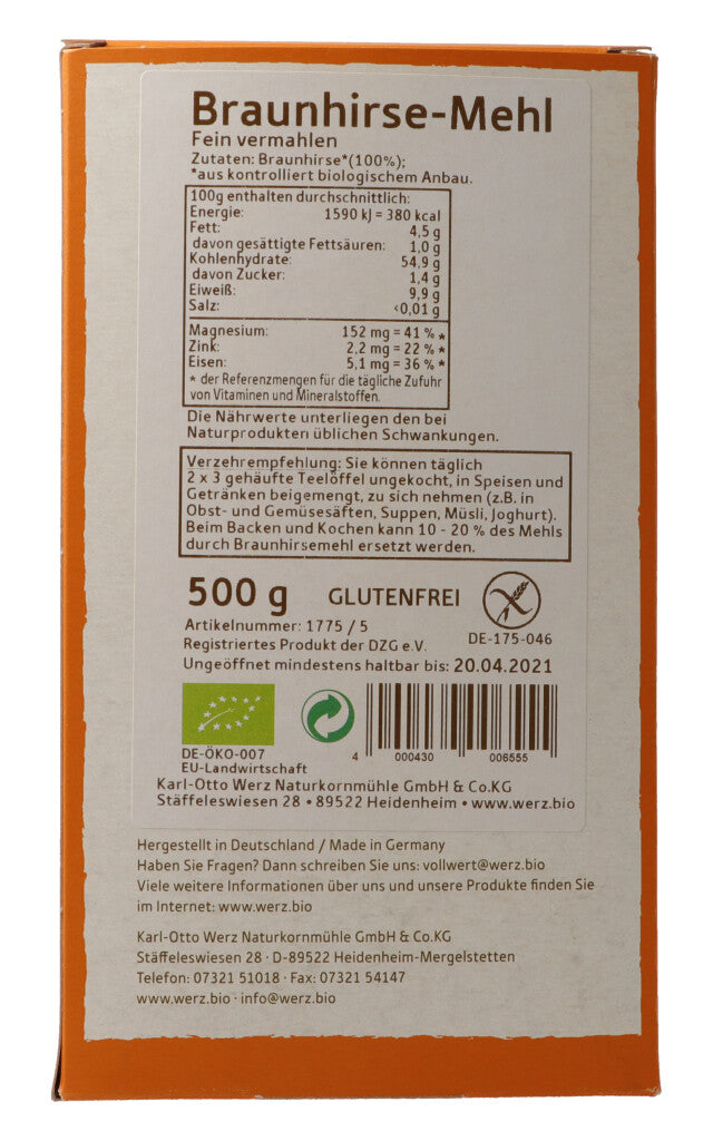 Werz Braunhirse Mehl glutenfrei Bio 500 g